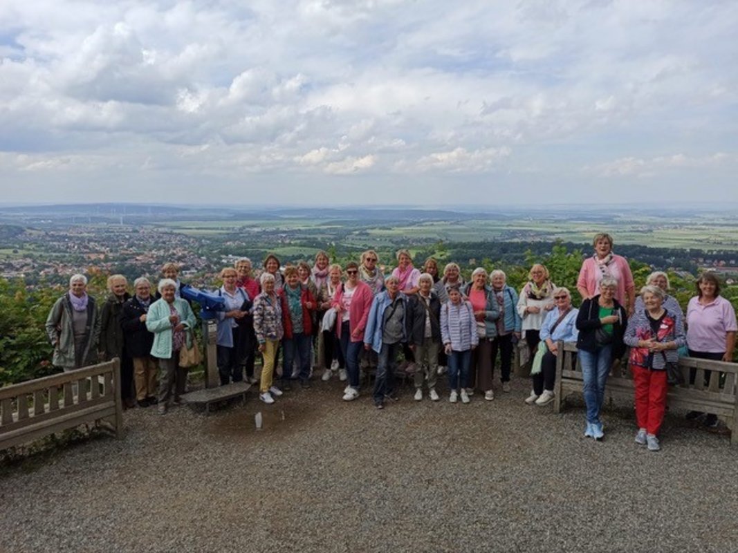 kfd auf Tour“ hieß es auch in diesem Jahr wieder bei der kfd St. Martin Sendenhorst. Mit 30 wohlgelaunten Frauen startete der Bus am vergangenen Donnerstag für vier Tage Richtung Harz. Erstes Ziel war die Altstadt von Goslar, wo bereits eine Bimmelbahn die Gruppe zur Stadtrundfahrt durch die UNESCO-Welterbe - Altstadt mit ihren über 1500 Fachwerkhäusern und zahlreichen Kirchen erwartete. Weiter führte die Fahrt nach Bad Harzburg und mit der Seilbahn hoch auf den Burgberg. Bei herrlicher Aussicht in den Harz stießen die Frauen mit einem Gläschen Sekt auf die gemeinsamen Tage an, anschließend war die Kaffeetafel im Restaurant Aussichtsreich gedeckt. Den Rückweg zur Talstation legten einige Frauen auf Schusters Rappen zurück. Gegen Abend erreichte der Bus das landschaftlich reizvoll gelegene Berghotel Ahorn in Braunlage. Nach einem reichhaltigen Abendessen ließen die Damen den Tag an der Bar Revue passieren . Am Freitag stand die bunte Stadt Wernigerode mit ihren farbenfrohen Fachwerkhäusern auf dem Programm. Mit der Schlossbahn ging es zunächst hinauf zum Schloss Wernigerode - auch Schloss Neuschwanstein des Nordens genannt. Nach einer Besichtigung der original eingerichteten prachtvollen Räumlichkeiten - sie zeigen die Wohnräume des deutschen Adels - blieb genug Zeit, den wunderschönen Ausblick auf die Stadt Wernigerode mit Sprungschanze und in der Ferne auf den Brocken zu genießen und anschließend die Altstadt zu erkunden. Nächstes Ziel war das Harzer Baumkuchenhaus. Die Geschichte und Herstellung des Baumkuchens konnte per Video und teilweise life verfolgt werden. Eine reiche Auswahl an unterschiedlichen Baumkuchen ließ das Besucherherz höher schlagen. In Braunlage zurück trafen sie die Damen nach einem gemeinsamen Abendessen in der Bar in der 10. Etage zum gemütlichen Beisammensein. Der DJ freute sich über die vielen Gäste und erfüllte so manchen Musikwunsch. Viel Spaß kam auf, als eine Teilnehmerin spontan zu einem Jubiläum beglückwünscht wurde - sie war vor 50 Jahren Schützenkönigin bei den Johannesbrüdern. Da durfte natürlich eine Polonaise nicht fehlen. Auch der Samstag bot ein vielfältiges Programm. In Halberstadt beeindruckte der nach französischem Vorbild errichtete Dom St. Stephanus und St. Sixtus mir seiner Pracht. Höhepunkt des Tages war dann sicherlich das nächste Ziel, die Altstadt von Quedlinburg - eines der größten Flächendenkmale Deutschlands. Bei einer Bimmelbahntour gab es erste Einblicke in die mittelalterliche Stadtstruktur, bevor die Welterbestadt mit einer weitgehend lückenlosen historischen Straßenbebauung individuell erkundet werden konnte. Vom Stiftsberg mit Gärten bot sich wieder ein wunderschöner Ausblick auf die Umgebung. Auf dem danach angesteuerte Hexentanzplatz in Thale konnten die Damen wegen einer Baustelle leider nicht tanzen, dafür entschädigte aber der Blick auf die gegenüberliegenden Klippen. Der Abend nach diesem erlebnisreichen Tag klang in gewohnter gemütlicher Runde mit Gesang aus. Und auch der Sonntag hatte bei strahlendem Sonnenschein wieder einiges zu bieten. Viele Frauen nutzten die Möglichkeit, unweit des Hotels mit der Seilbahn den Wurmberg bis zur Bergstation hinauf zu fahren. Und es lohnte sich. Der Blick auf den gegenüberliegenden Brocken war einfach traumhaft. Einige Frauen wanderten zur Talstation zurück, während andere den Blick talwärts aus der Gondel genossen. Nachmittags gab es noch einen kurzen Stopp in Göttingen am alten botanischen Garten. Mit vielen schönen Eindrücken, ein Harzer Hexen-Lied immer auf den Lippen, traf die Reisegruppe gegen Abend wieder in Sendenhorst ein.